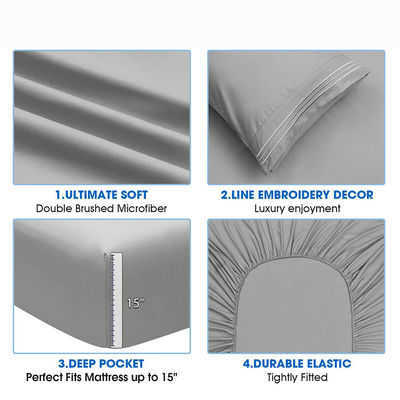Matériau: les draps de lit 4pc sont faits de 100% de microfibre, les draps sont très doux et confortables, adaptés à tous les types de peau.Les draps ne font pas de bruit quand ils sont déplacés et vous pouvez dormir très bien toute la nuitLe drap de lit en 4 pièces est plus durable que le coton et n'est pas en pilule, et le tissu en microfibre est respirant et ne vous gardera pas au chaud.Les draps rendent votre lit beau tout en le gardant propre et rangé.. Et il est préférable pour n'importe quelle pièce de votre maison - chambre à coucher, chambre d'hôtes, chambre des enfants, RV, maison de vacances.